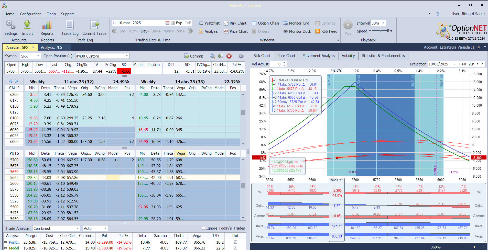 Ajustamos de nuevo una put vendiida hacía abajo y cortar deltas positivas
