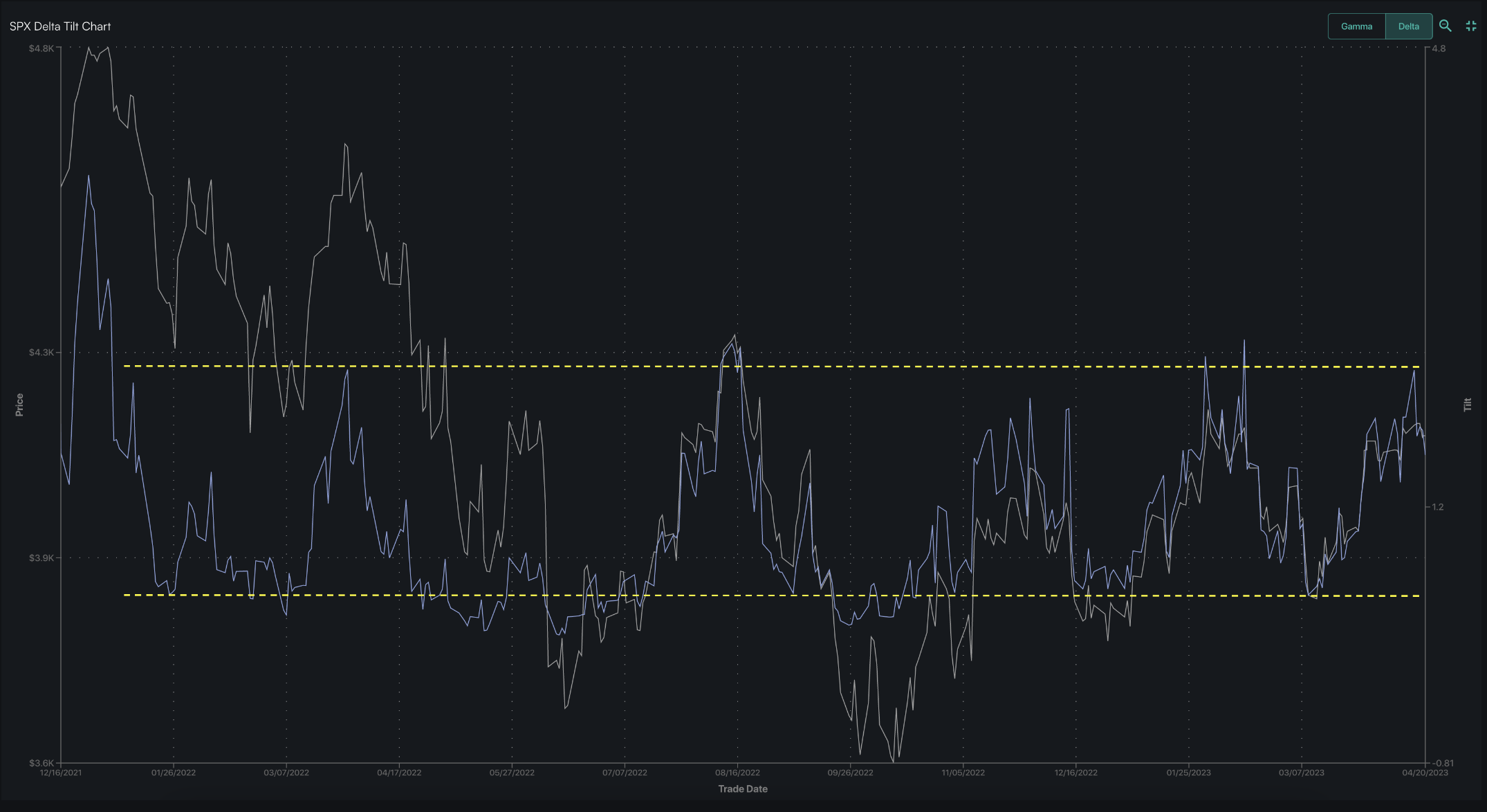 This Tilt metric has turned down with April’s expiration, which is driven by more net calls expiring vs puts. While these changes to positions may open the door for a larger correction, we read it more as a loss of momentum.