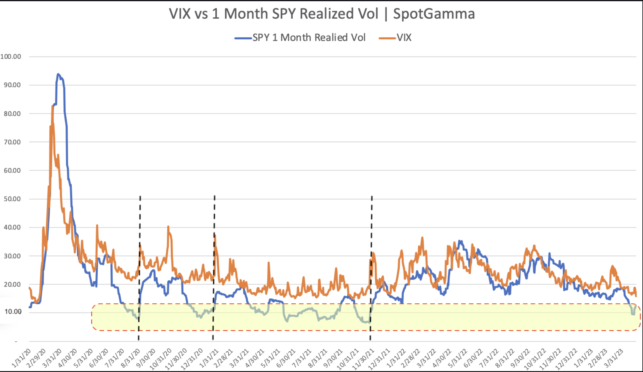 ‣ Bulls may have an edge into May OPEX, as low IV + positive gamma serve to support equities