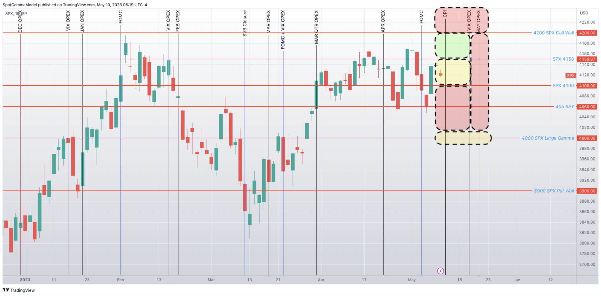 Accordingly, we are looking for markets to test the 4050-4000 level next week based purely on OPEX dynamics, with 4000 being a massive options strike (which likely invokes some initial support). Further downside is likely tied to the scale of debt ceiling drama. For more on this topic see yesterdays AM note.