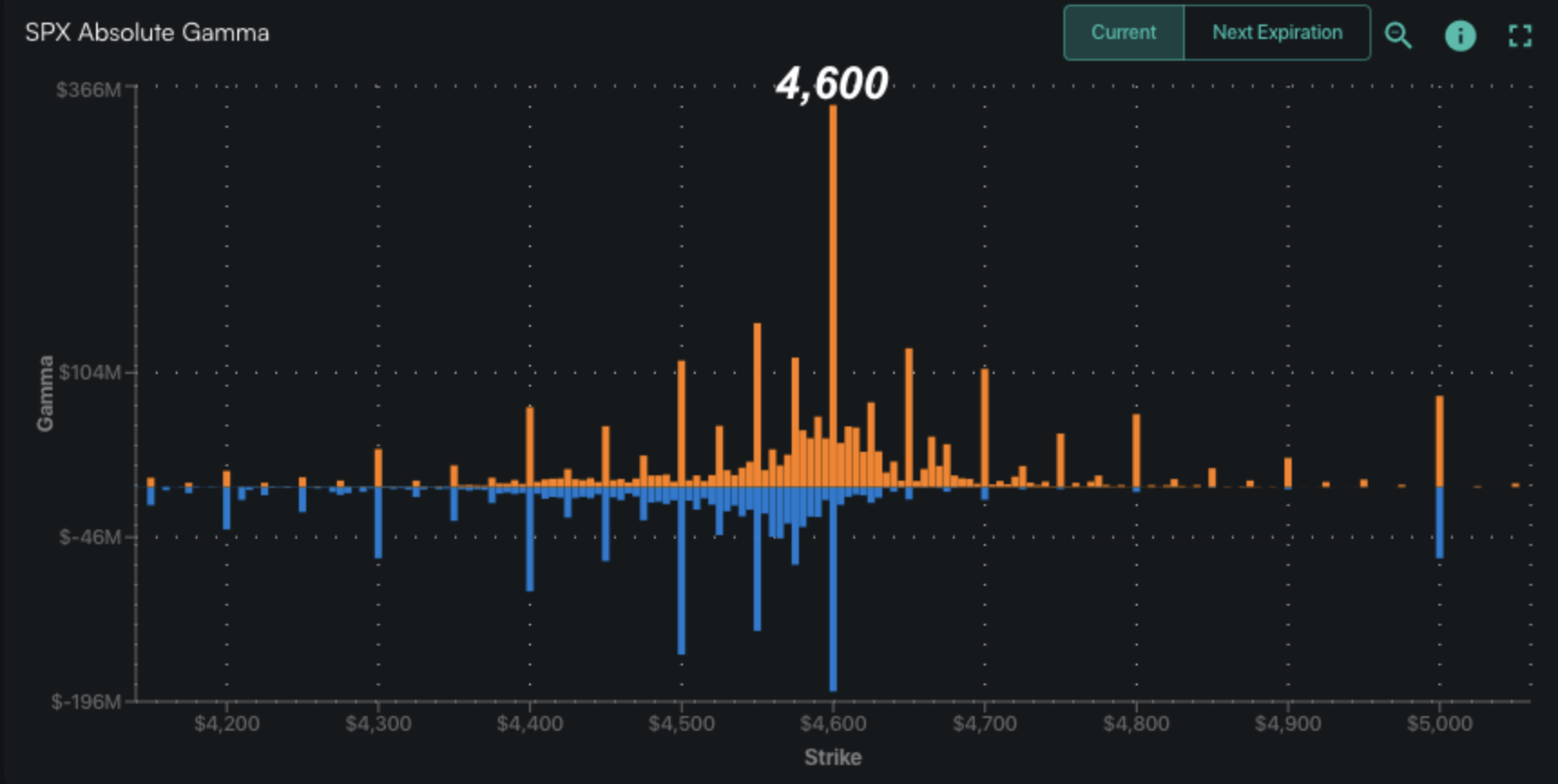 level, and for the Wall to then shift to a higher strike. 4,600 would then become a base of support, and we’d look for equity market drift up to the next