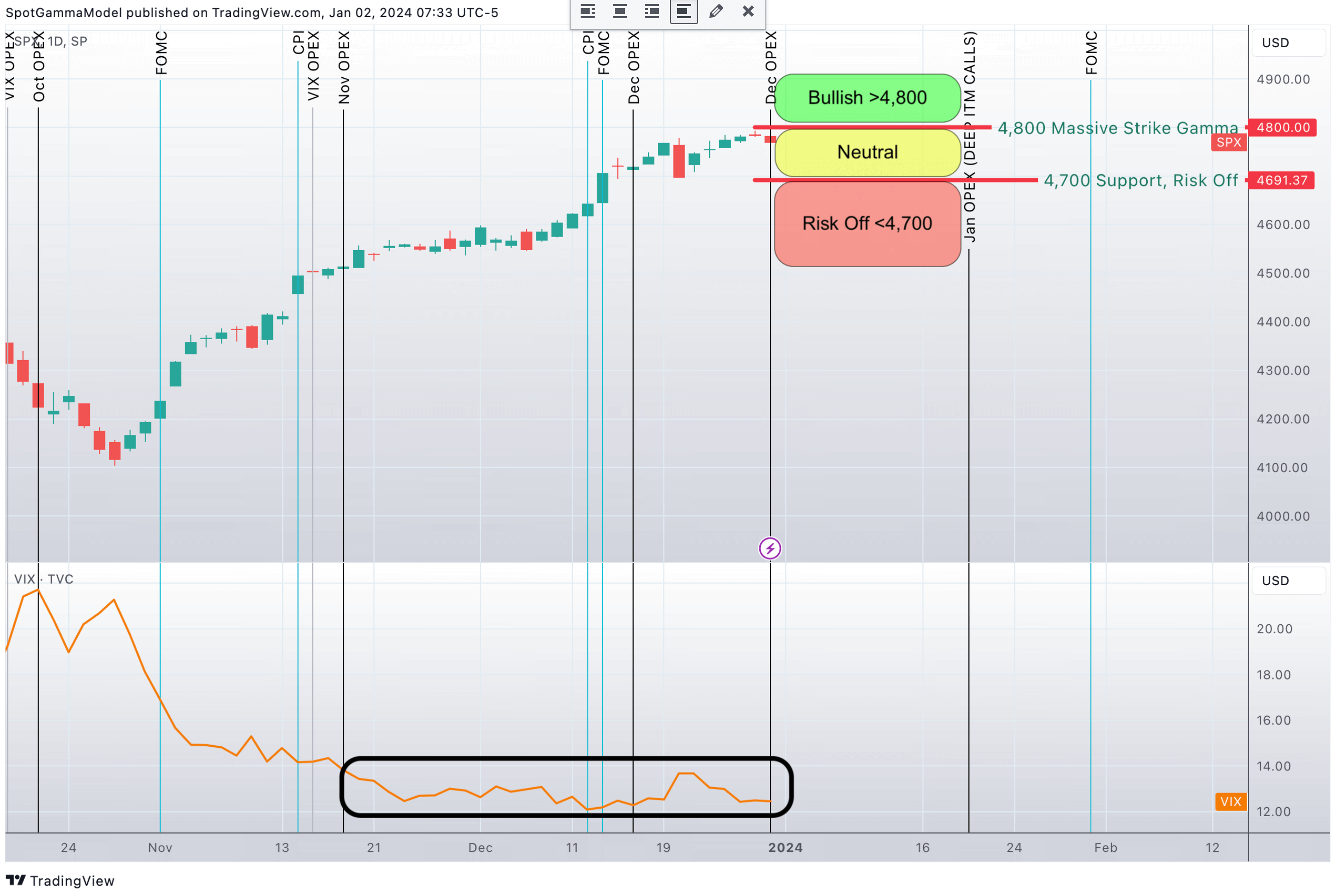 ‣ SPX IV’s for the final week of 2023 are extremely low, and we warn traders of “jump risk” embedded with this (see note).*