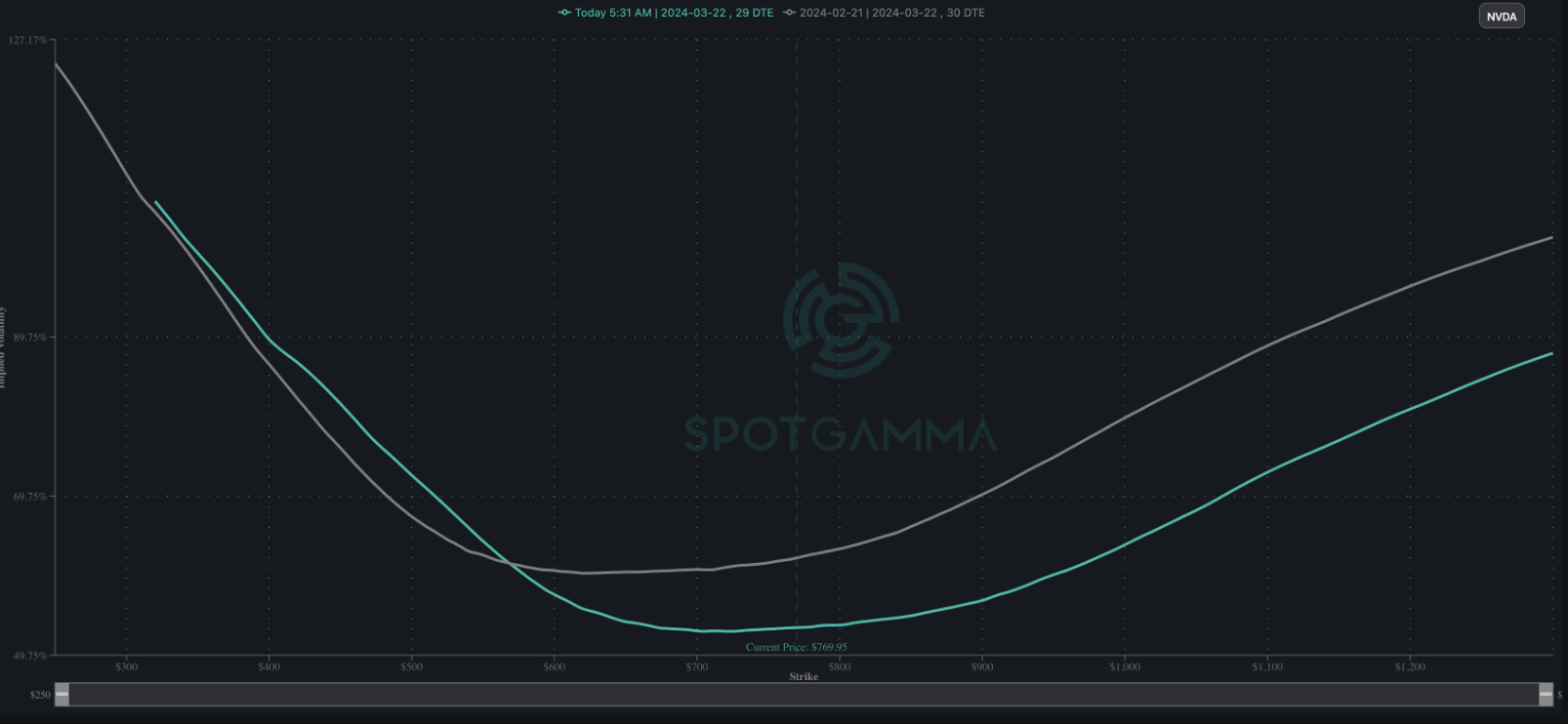 We also note that NVDA flagged a product release for March 18th, which lines up with the large quarterly March OPEX. This is the next major time frame to mark for the options market.