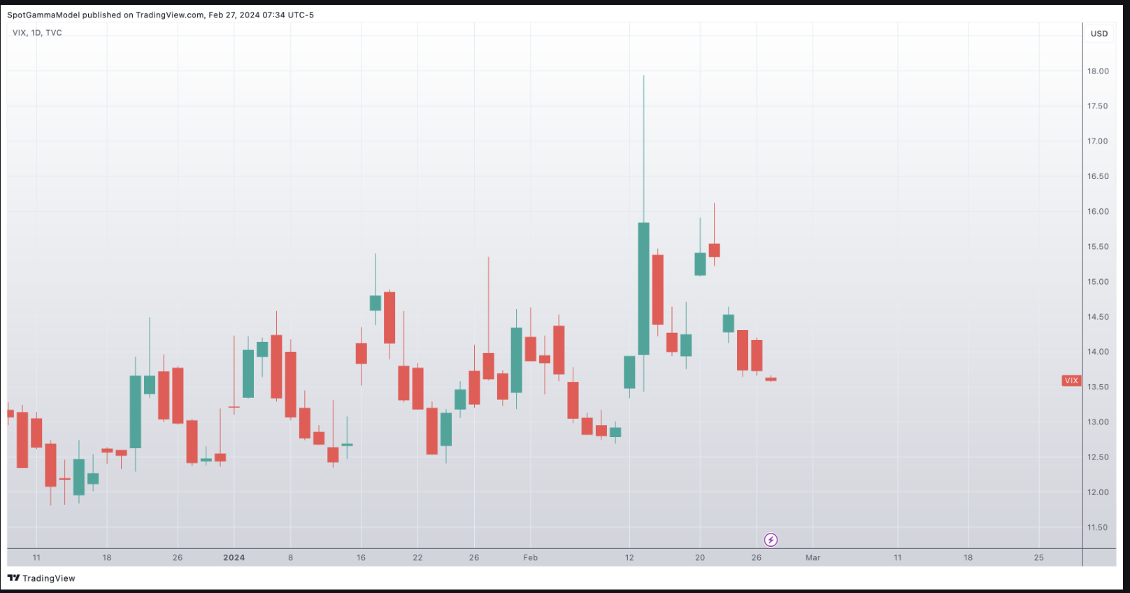 , or even Walls that roll mildly higher, likely results in lower VIX prices into March OPEX. For this reason we are targeting a 12-handle VIX into mid March, and continue to think this is a prime time for those VIX ETN’s to decay (see Friday’s note).