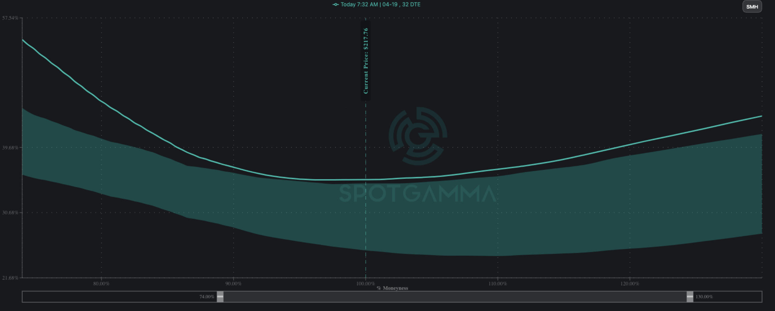 ‣ NVDA’s event on 3/18 failed to renew the call bid in the chip sector, likely triggering longer term consolidation in the space (ref: 216 in SMH).**