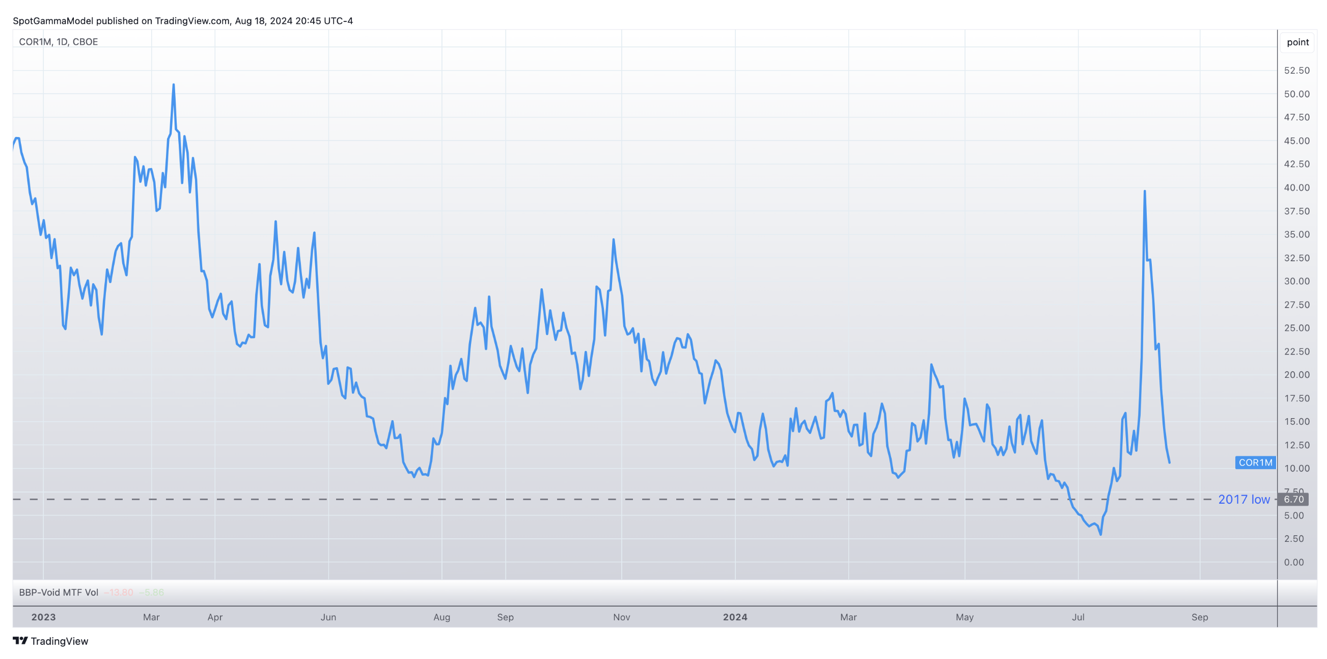 Wednesday also has FOMC minutes, which generally carries a small amount of event volatility. This data is followed by a key Saturday panel by Powell at Jackson Hole, and then NVDA ER next week.