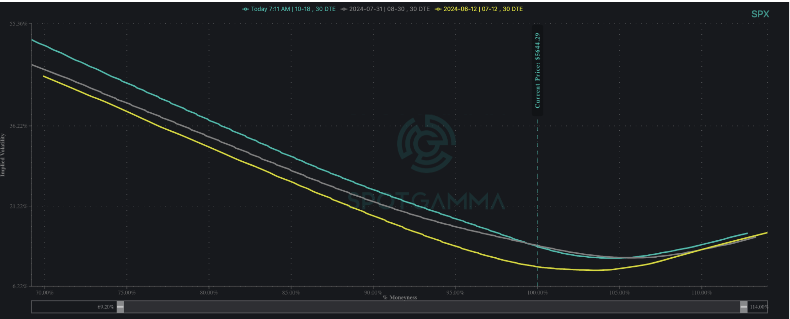 As we discussed in yesterday’s webinar, this setup looks a lot like that of August 1st, wherein a break of 5,500 (vs 5,600 today) opened the door to higher volatility. We’re not saying VIX 65 is in the cards – but the combination of negative gamma + uncertain rate impacts are risky conditions. Taken together, ~15% IV for 1% OTM puts seems a pretty reasonable hedge – with Dec puts being more attractive given the IV-stickiness of elections.