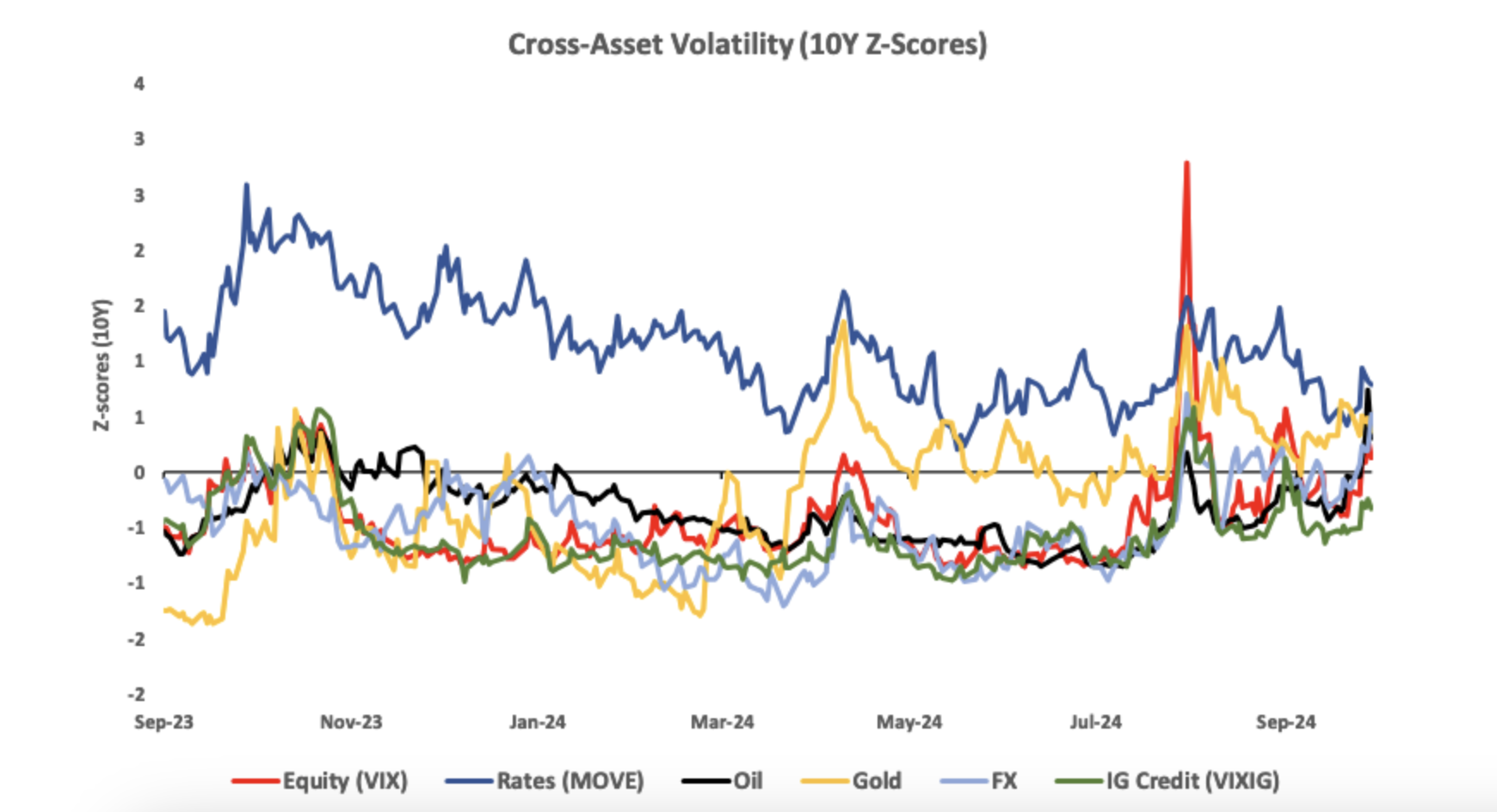 We’ve extensively covered why equity implied volatility (i.e. VIX) is elevated, and likely to remain so (here & here), but increasing vol is not an equities-only phenomenon. Rate vol is ripping (MOVE index back to 124), as is oil & FX vol. This is not always a signal that equities are going to drop sharply, but it is certainly a red flag.