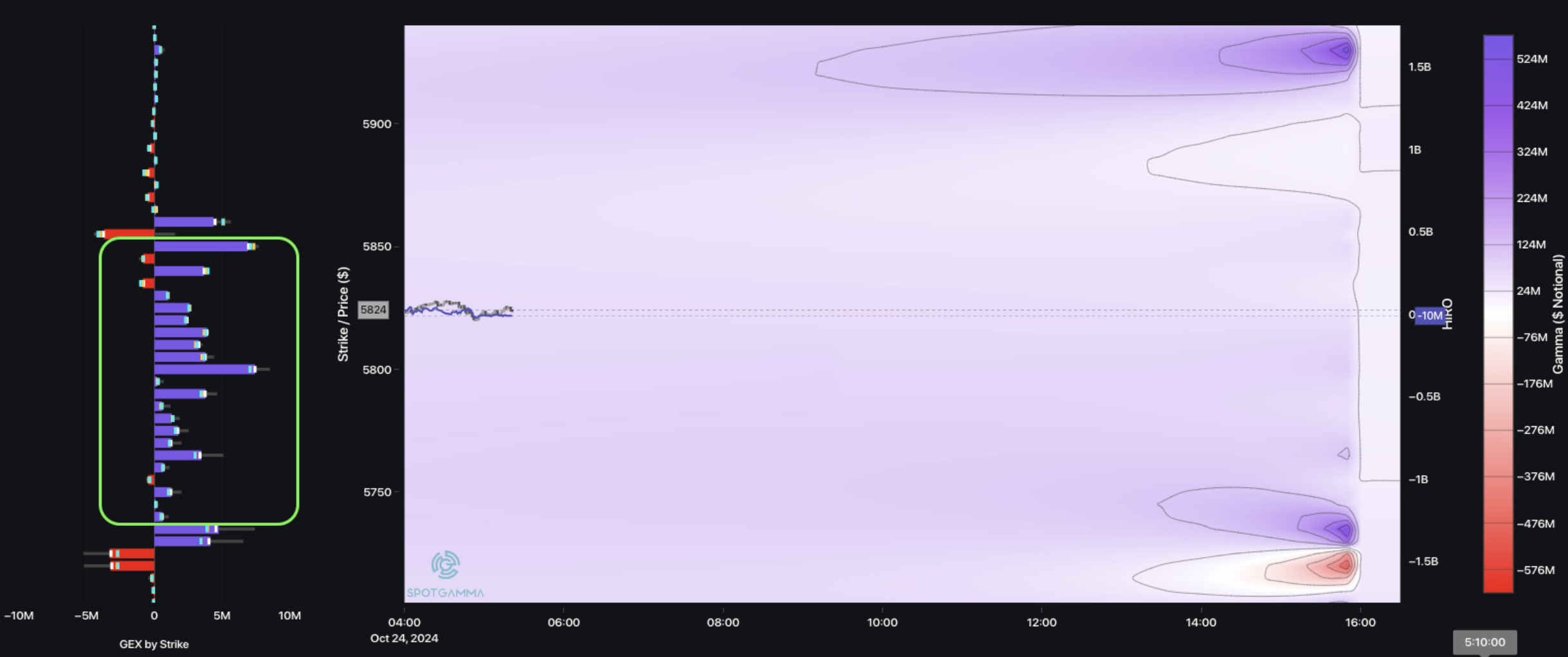 Below 5,800 the positions are primarily puts. We’ve not yet felt the sting of negative dealer gamma on last weeks break <5,800, because short dated, pre-election/FOMC put sellers have stepped in. That put selling has locally stabilized equities, and its a reason we have been neutral on the break of 5,800, not short (review our “Macro Themes” at the top of Daily Notes).