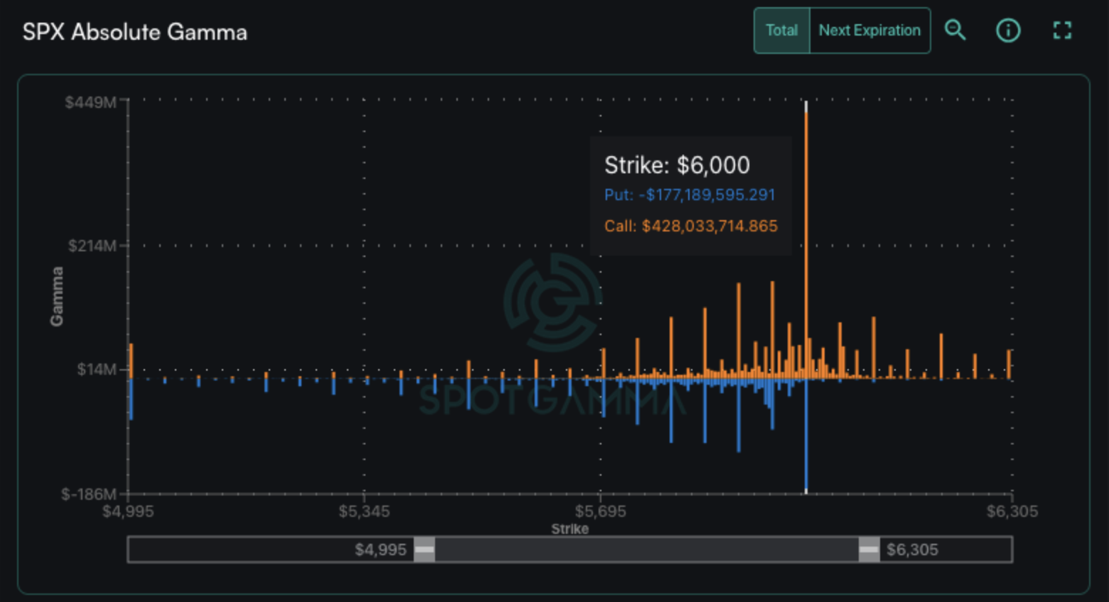 That’s decent size expiring, certainly making it “the” level to watch, today. However, next weeks Monthly OPEX is a much more impactful expiration, and therefore 6,000 likely remains a key level into next week as another ~30k calls (at 6,000) expire.