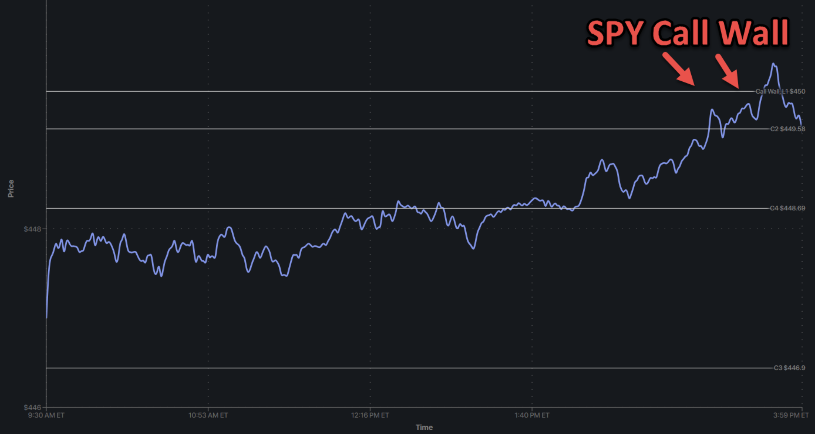 was promoted for SPY, QQQ, and IWM; SPX is holding onto 4500. The market squeezed up for most of the day, growing into this higher ceiling. SPY and IWM both finished up about +0.80%, while QQQ stole the day with a 1.70% gain.