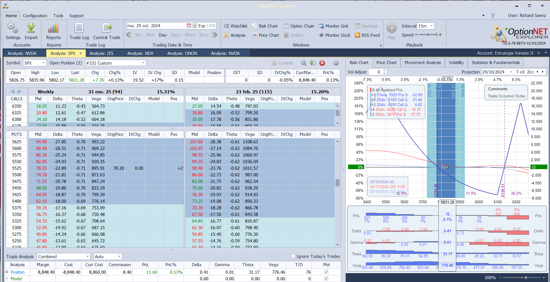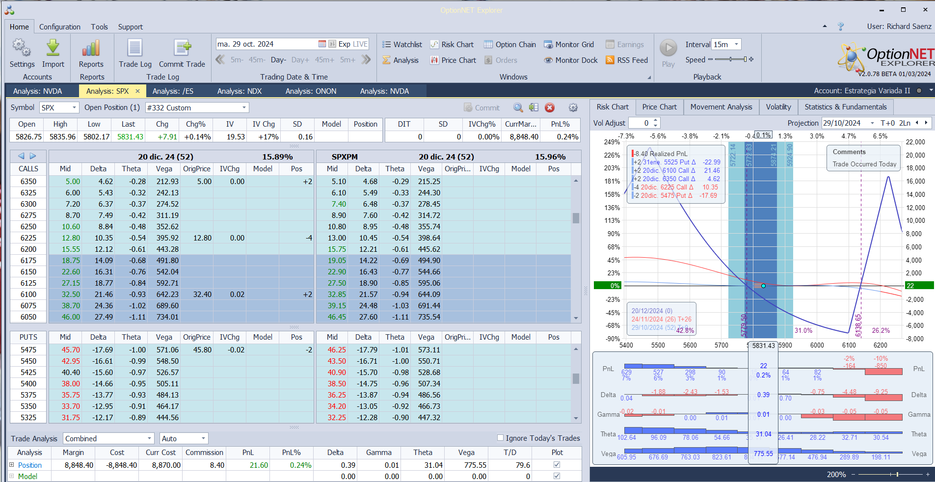 Inicio de una nueva poisición. Adjunto 2 pantallas de ella. Las opciones de diciembre son las trimestrales y vencen AM (no son las weeklies PM). Las opciones de enero son del día 31