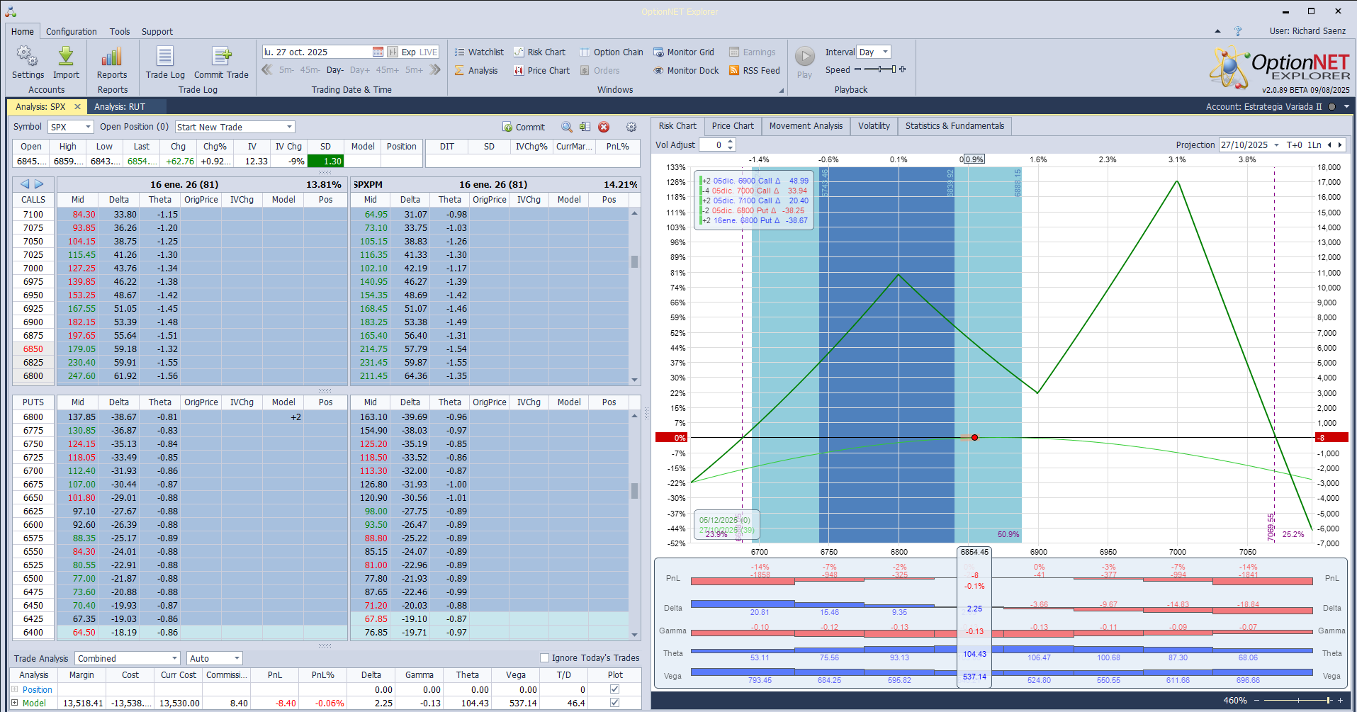 Inicio de una nueva posición. Y sólo comentar que donde puede funcionar muy bien esta estrategia es que si el mercado se mueva hacia el centro de la mariposa de calls, en este caso el epicentro es el strike 7000. La compra o mejor dicho los recursos económicos para mantener esta mariposa simétrica son muy pocos