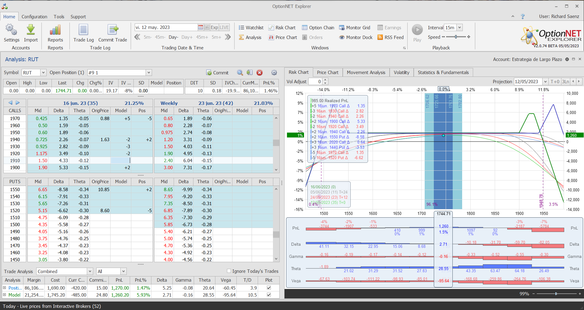 Nuevo ajuste. Acercamos la zona de mayores beneficios a vencimiento arriba, inyectamos más theta positiva, y cortamos las deltas positivas.