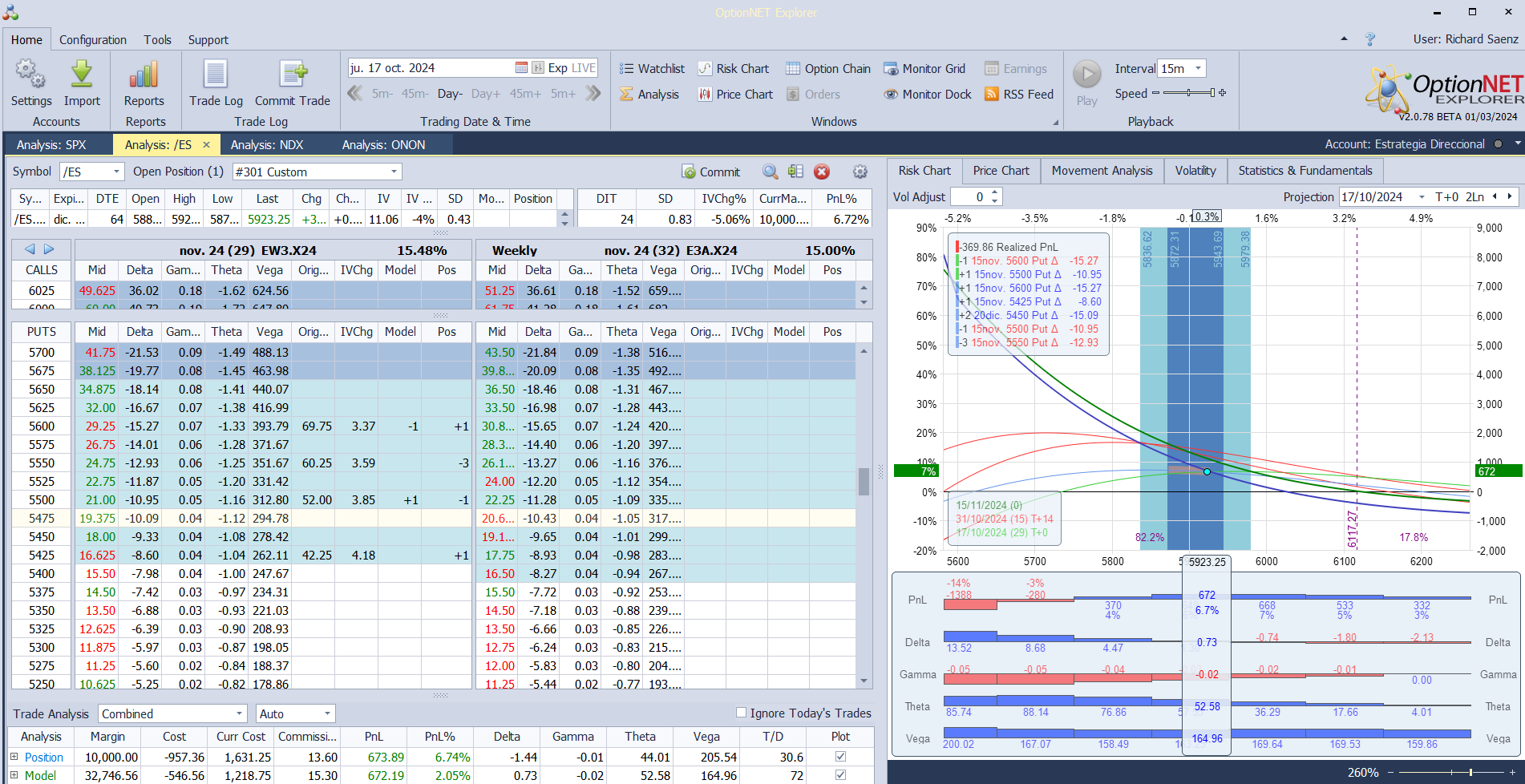 Nuevo ajuste. Ajustamos deltas en la posición. Roleamos arriba una put vendida