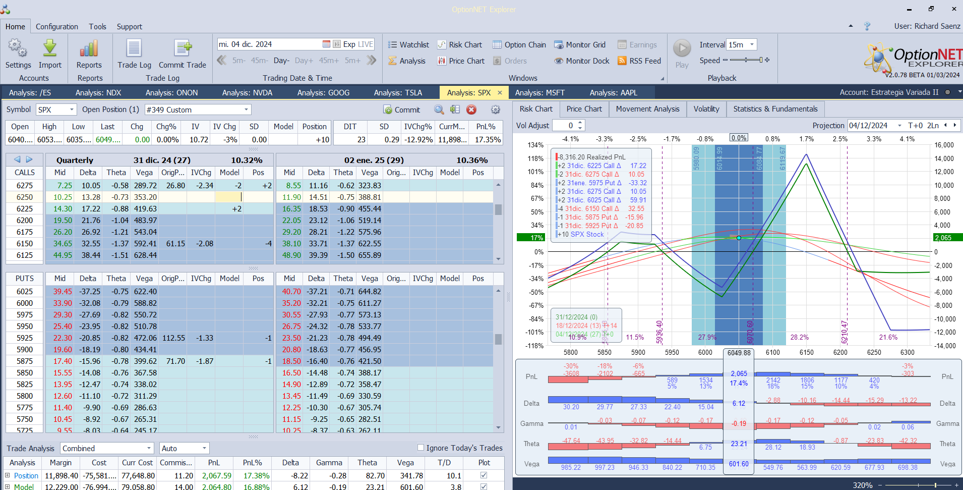 Nuevo ajuste. Bajamos de strike calls compradas para añadir más deltas positivas
