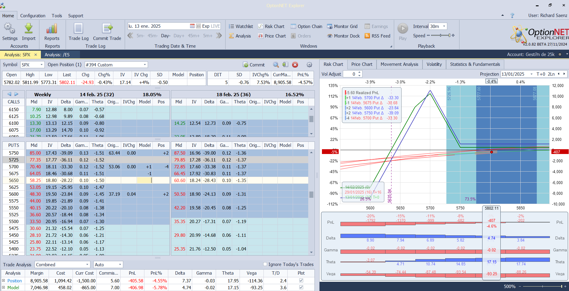 Nuevo ajuste. Bajamos una put vendida para ajustar deltas positivas