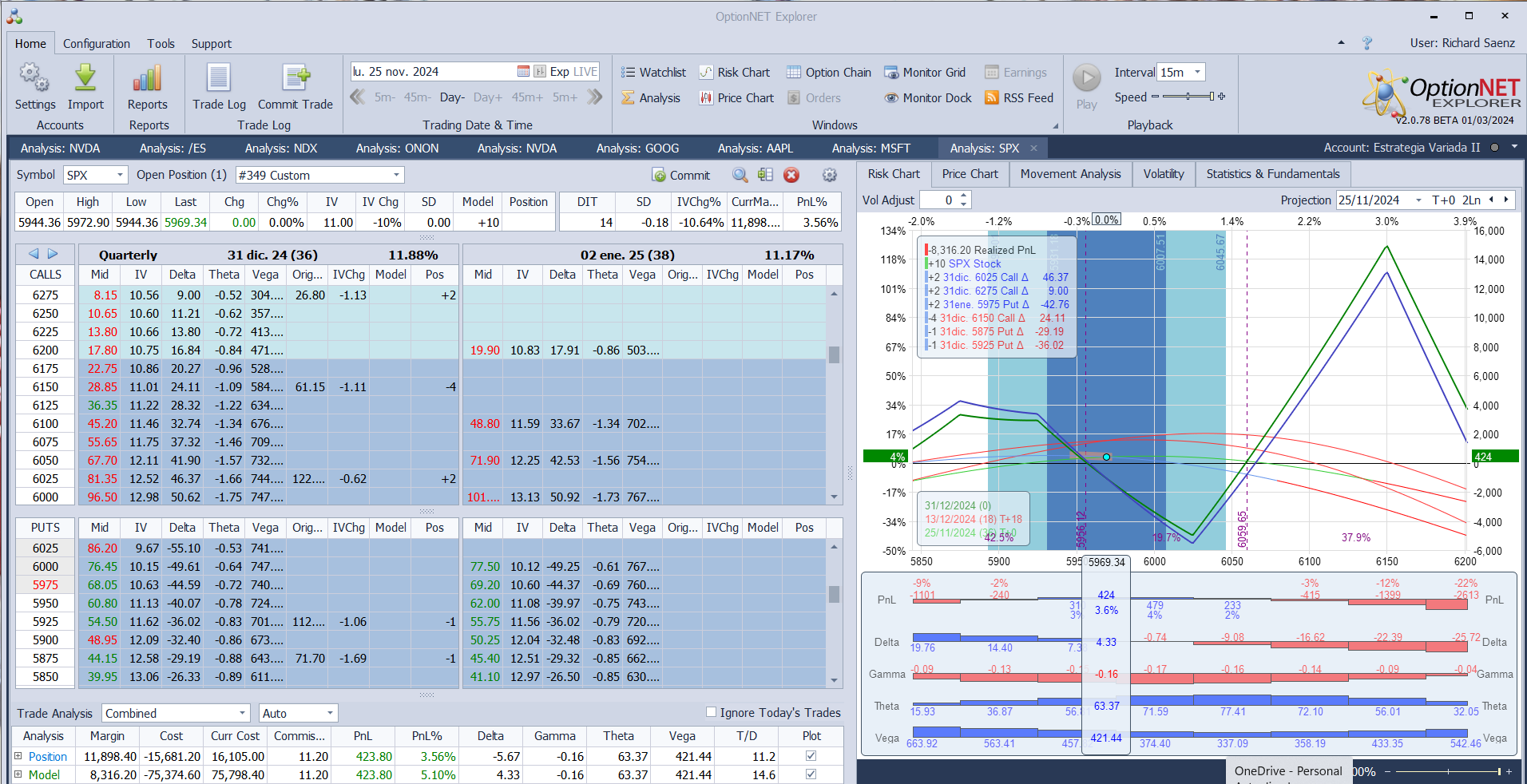 Nuevo ajuste. Compramos 2 micro futuros al mercado (precio aprox. 6012, precio spot 5990) y conseguimos deltas positivas