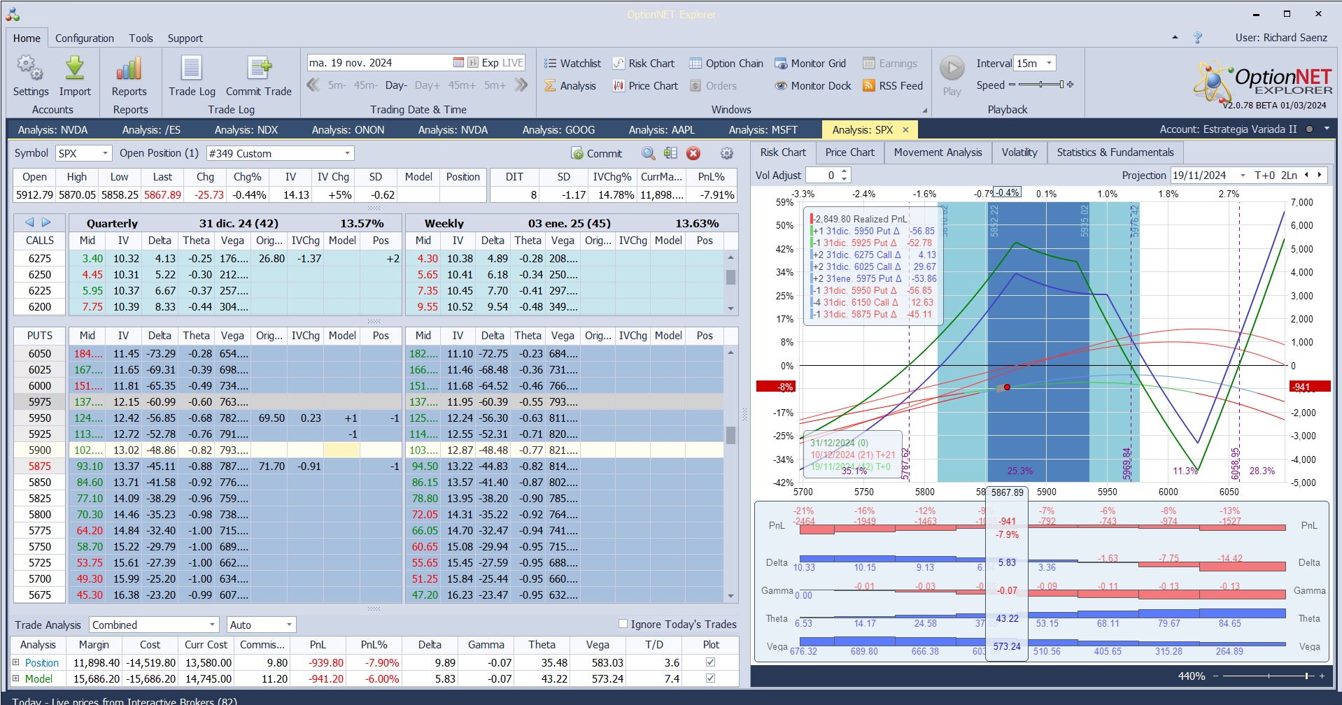 Nuevo ajuste. Cortamos deltas positivas a la mitad bajando otra put vendida