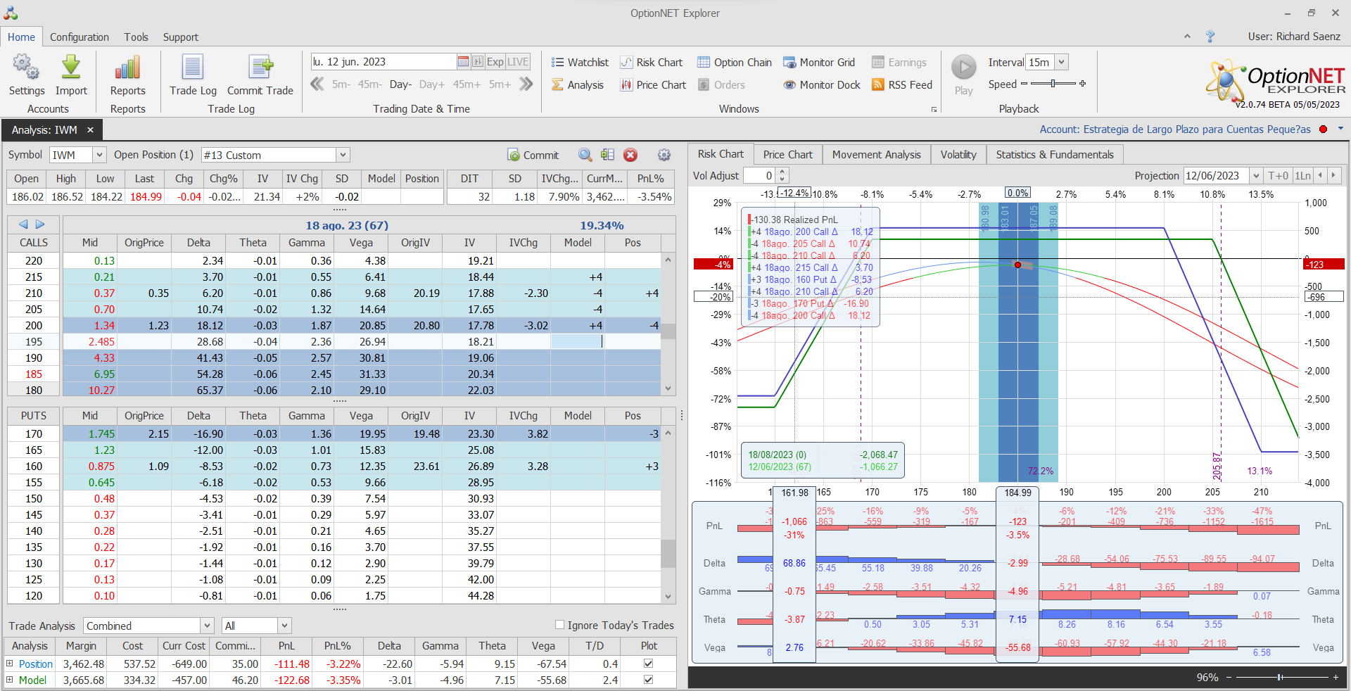 Nuevo ajuste. Cortamos más las deltas negativas y extendemos la zona de beneficios a vencimiento a niveles más altos