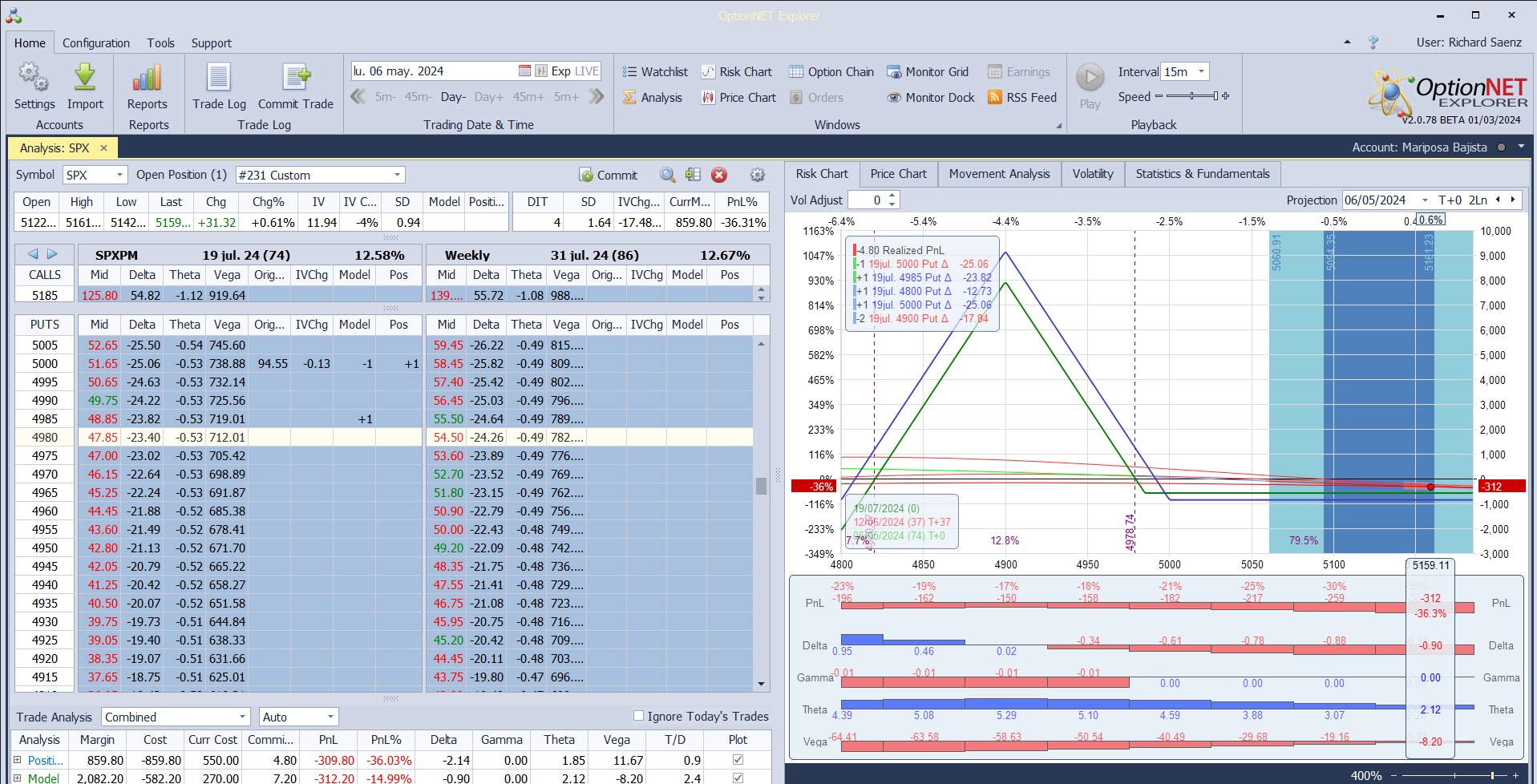 Nuevo ajuste. Elevamos la ala derecha para ir minimizando pérdidas con un mercado alcista