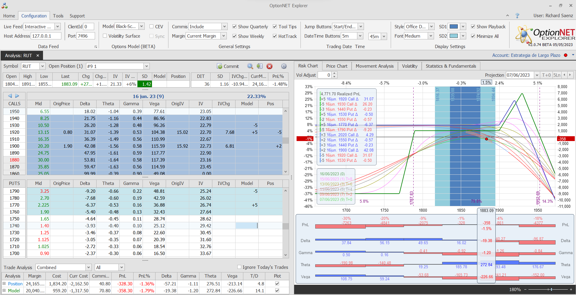 Nuevo ajuste. Liquidamos la mariposa bajista que se convierte en venta de put spread y subimos el strike de las calls vendidas. Cortamos deltas negativas. RUT muy fuerte hacía arriba