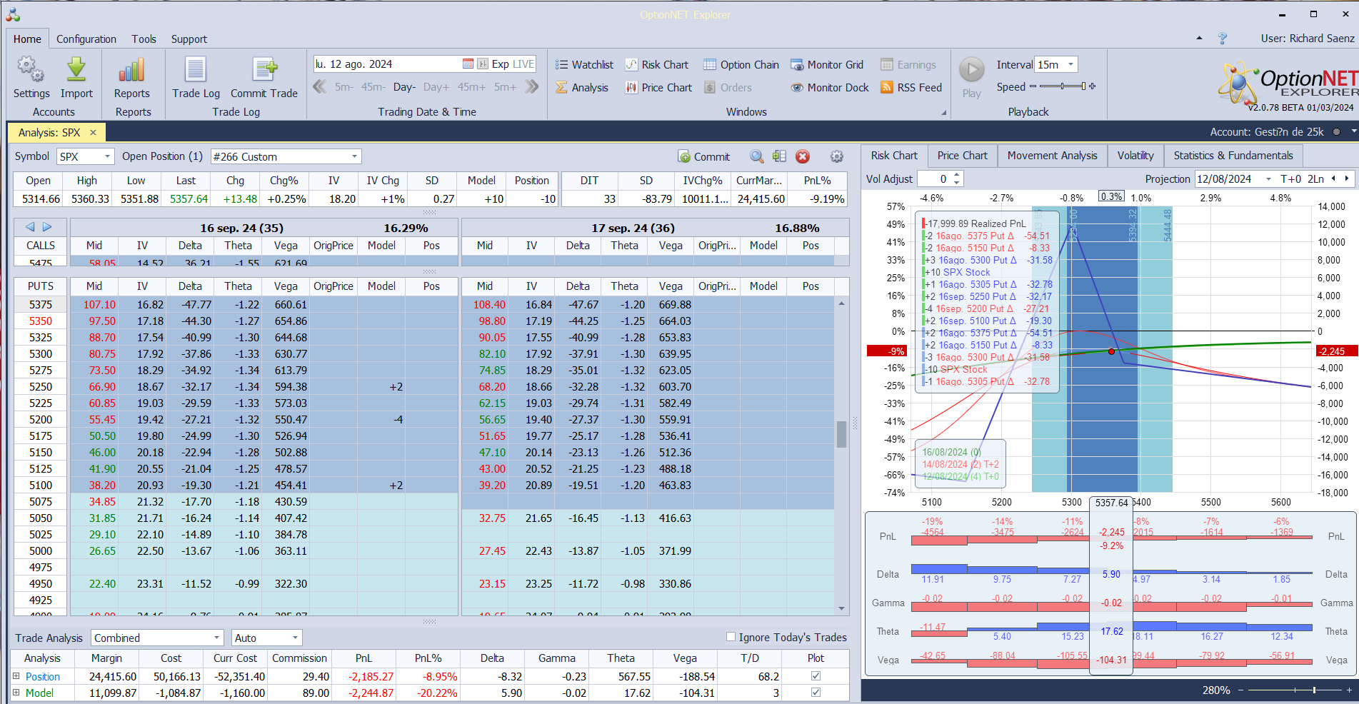 Nuevo ajuste. Roleamos la posición a otro vencimiento, tomamos nota de las pérdidas en la posición actual para ir paliandolas en esta nueva posición