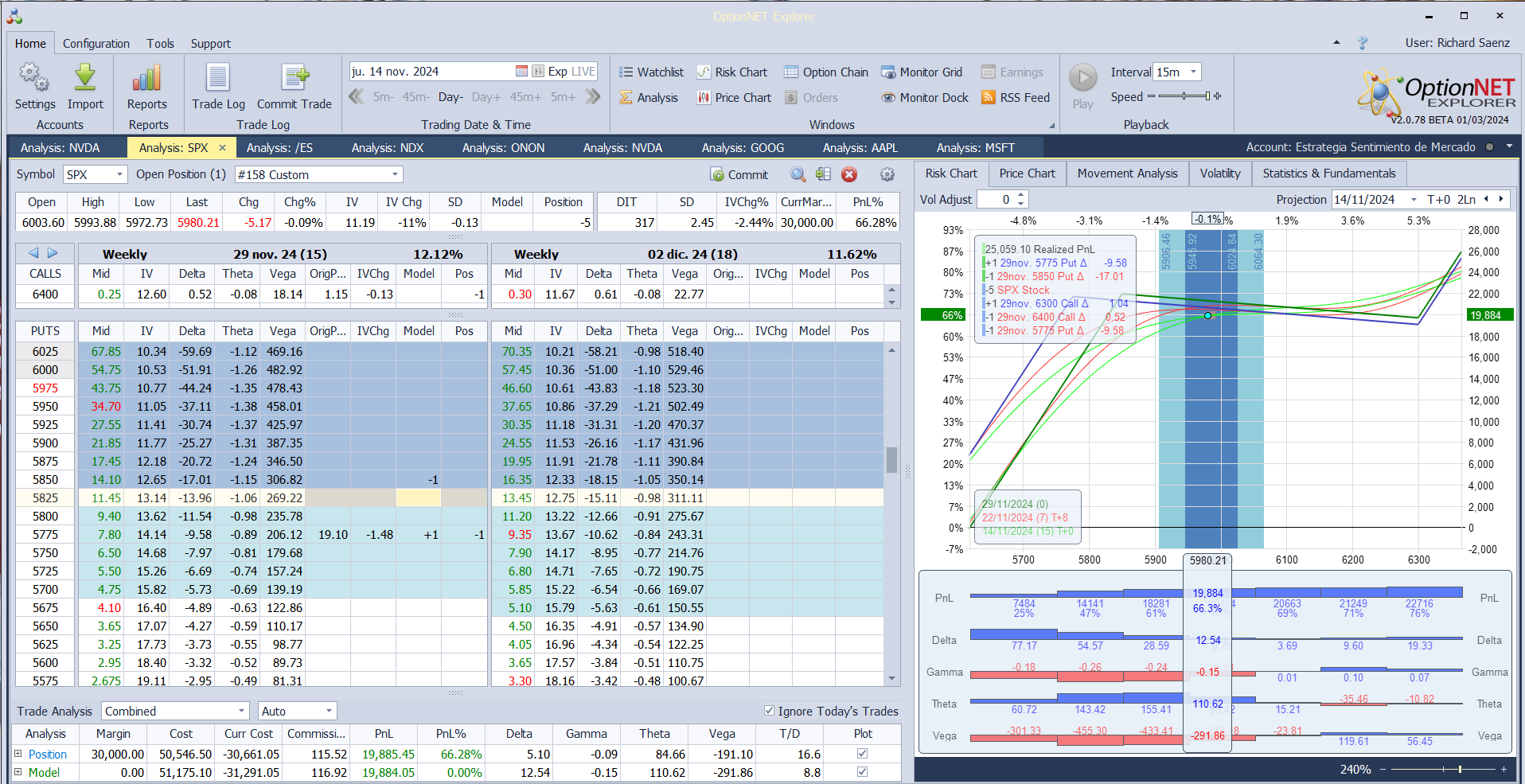 Nuevo ajuste. Subimos la put vendida y metemos más prima extrínseca en la posición