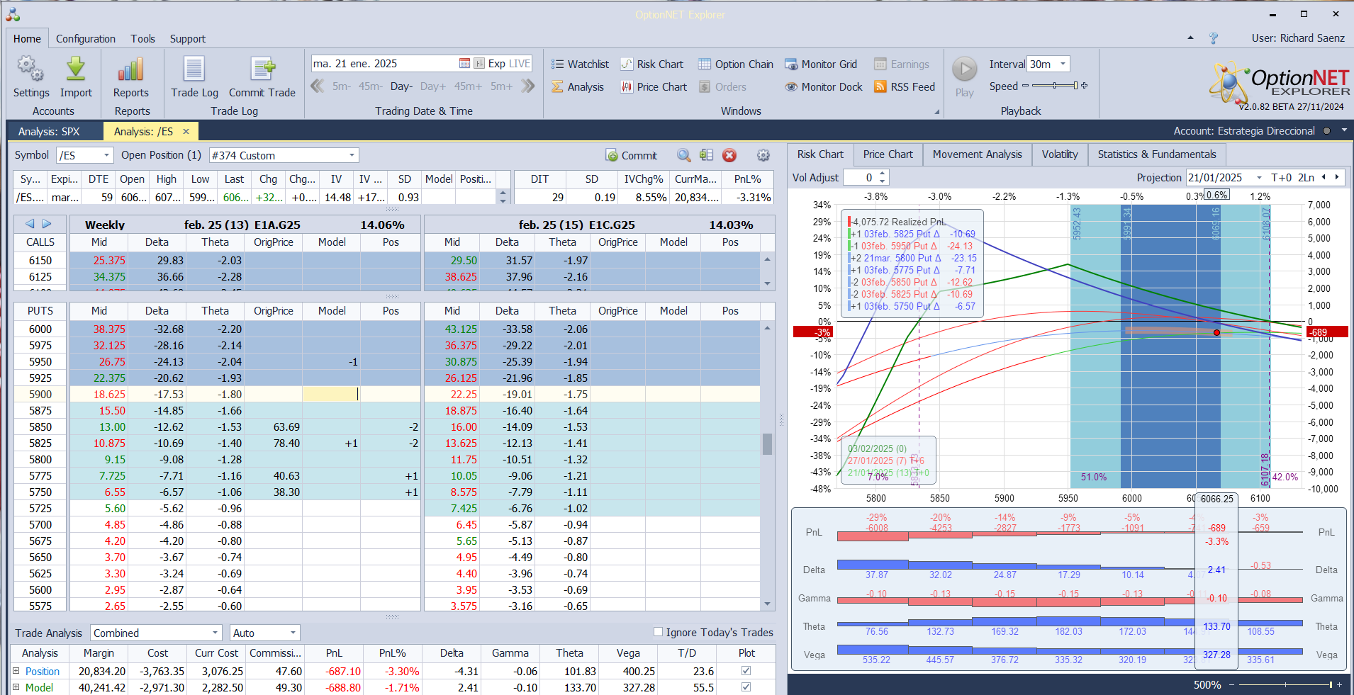 Nuevo ajuste. Subimos una put vendida para meter más deltas positivas