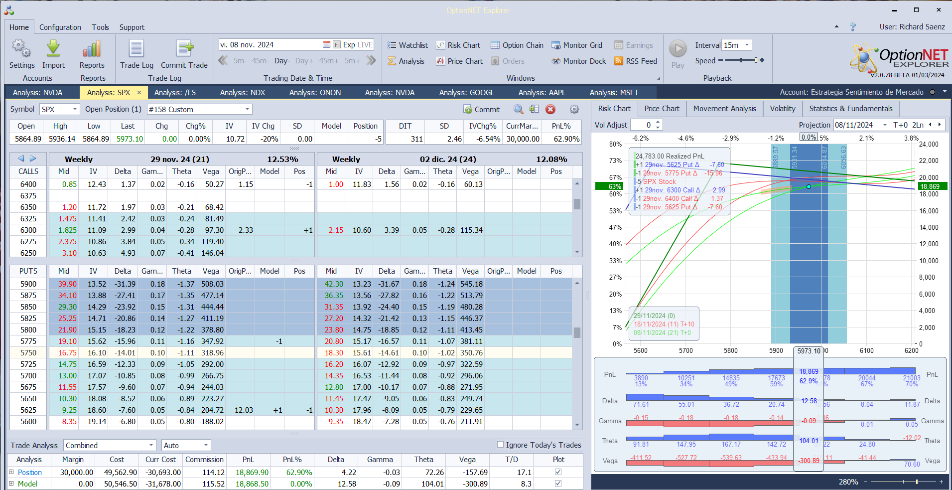 Nuevo ajuste. Vamos a aprovechar y ajustamos subiendo la put vendida. El ajuste se puede hacer en cualquier momento. No es urgente
