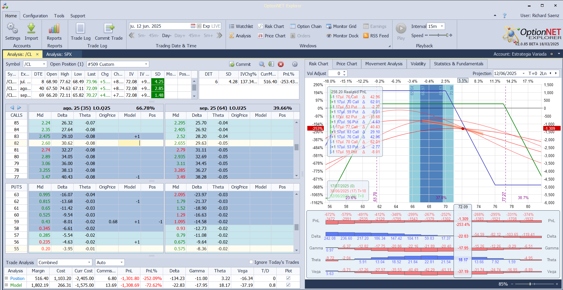 Por los bombardeos esta noche de Israel contra Iran el petroleo se ha disparado hacia a arriba dañando mucho a esta prueba que estamos haciendo sobre CL. Ajustamos las deltas